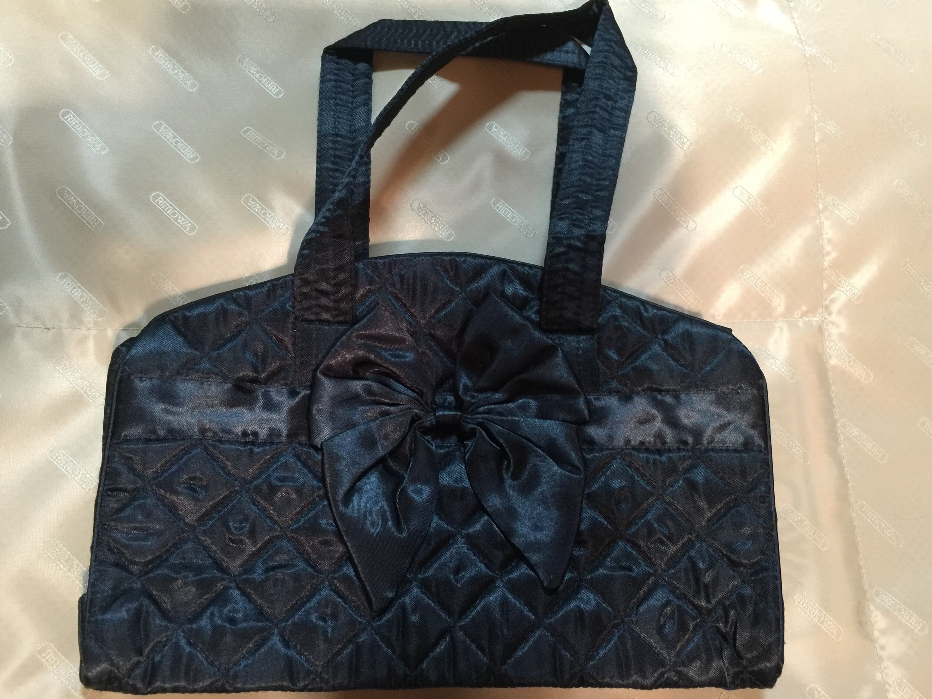 ♥薄型のリボンバッグです。旅行のサブバッグとして、また近所への買い物の時にどうぞ。インナーはビニールコーティングで中にポケットがひとつあります。